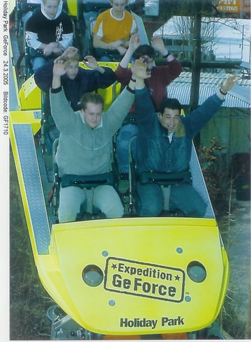 Besonderheiten: Weltweit einmaliges Fahrelement im First Drop; bei 82 Grad Gefälle wird der Zug gleichzeitig um 74 Grad um die Längsachse gedreht! Es entsteht das Gefühl, ohne jegliche Führung in die Tiefe zu stürzen, bevor der Zug nach rechts abdreht und weiter in die Tiefe stürzt. Expedition GeForce gewann 2002, 2003, 2004 und 2005 die bekannte und begehrte Fan-Auszeichnung „Internet Steel Coaster Poll“ („Beste Achterbahn der Welt“) und erreichte schon im Eröffnungsjahr 2001 und wiederholt 2006 den zweiten Platz der Abstimmung.